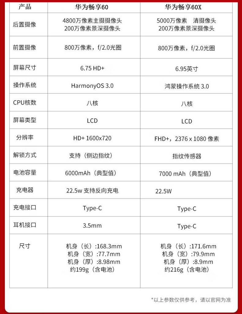 华为 畅享60X 学生影音大屏内存鸿蒙智能手机7000mAh续航