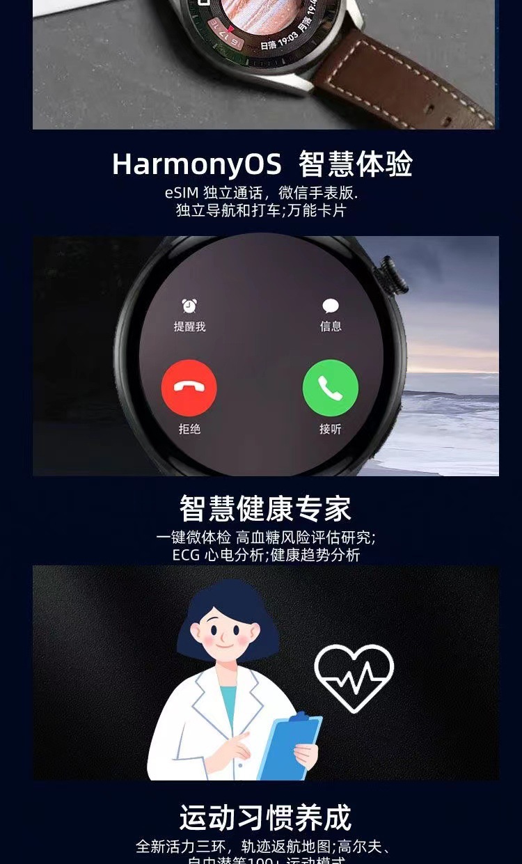 华为手表Watch3Pro智能支持esim独立通话4G运动蓝牙心率血糖血氧