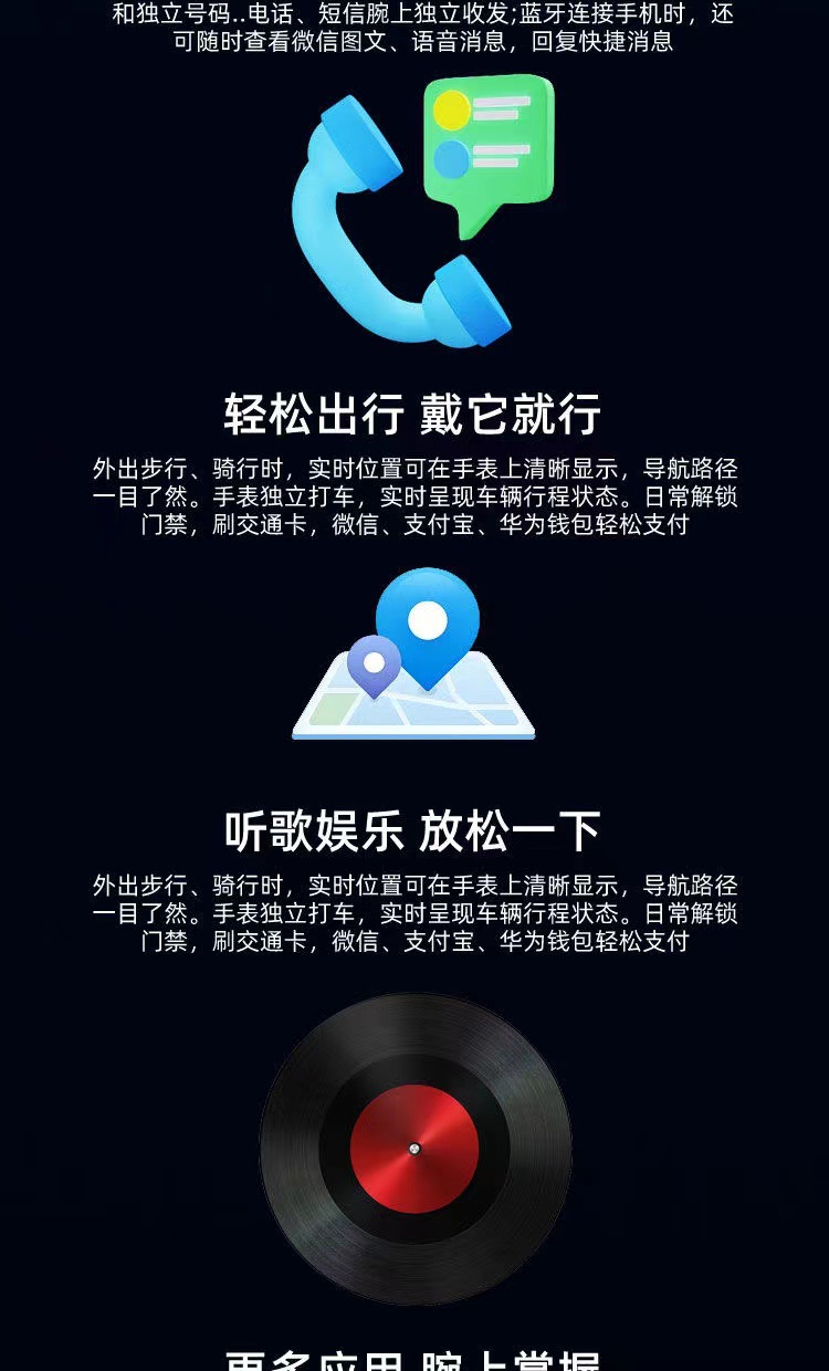 计步,心率监测,社交娱乐,蓝牙通话,智能提醒