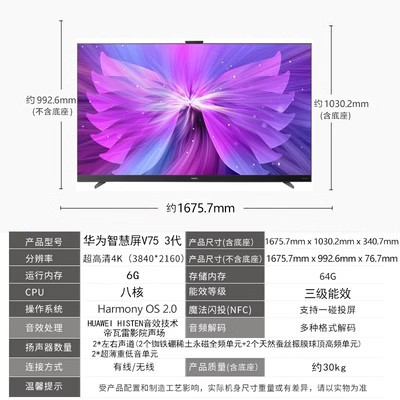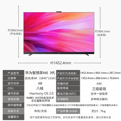 华/为智慧屏V65/V75/V85 3代8核超薄全面屏4K超高清智能电视适用 数量