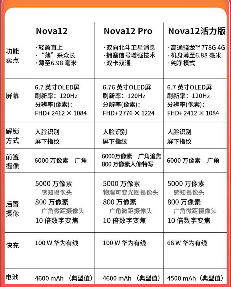 新品HUAWEI/华为 nova12Pro 前置6000万人像鸿蒙智慧智能手机