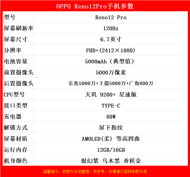 新品OPPO Reno12Pro直屏天玑9200+ 星速版旗舰学生智能拍照AI手机