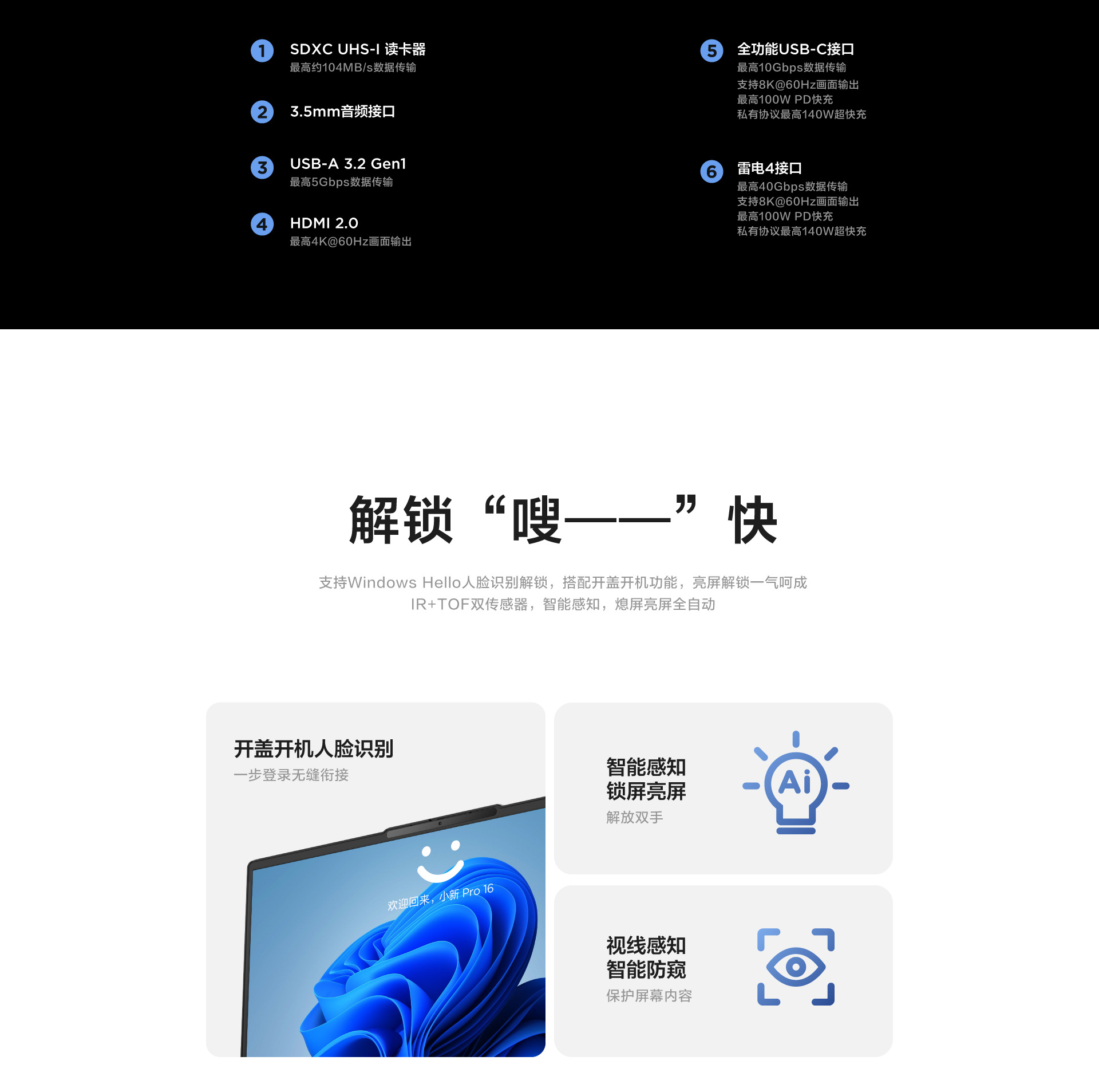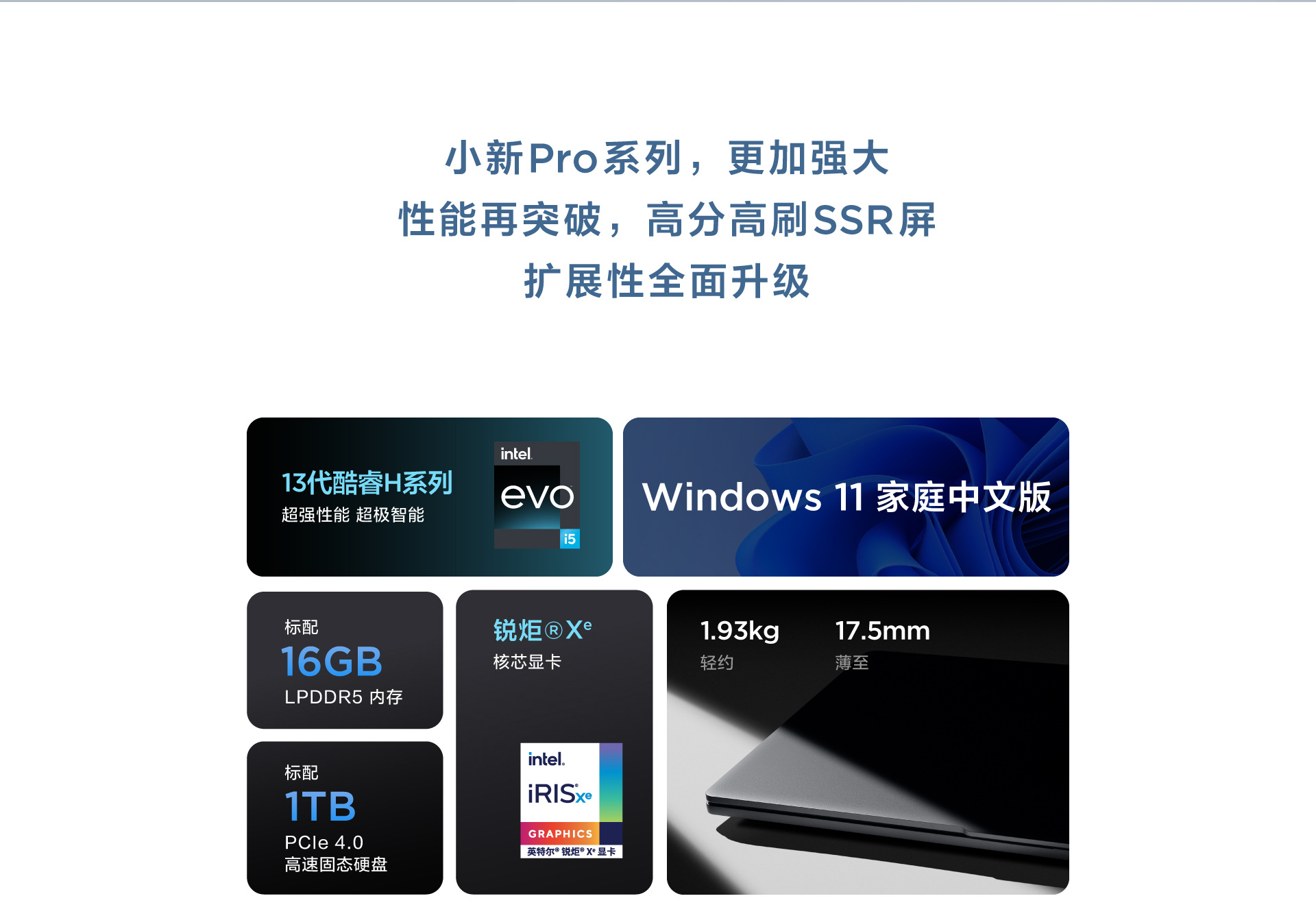 联想小新pro16 2023 I5-13500H 16G 1TB 16英寸AI超能笔记本