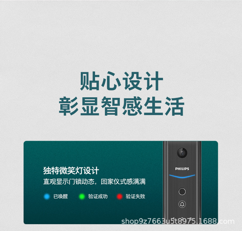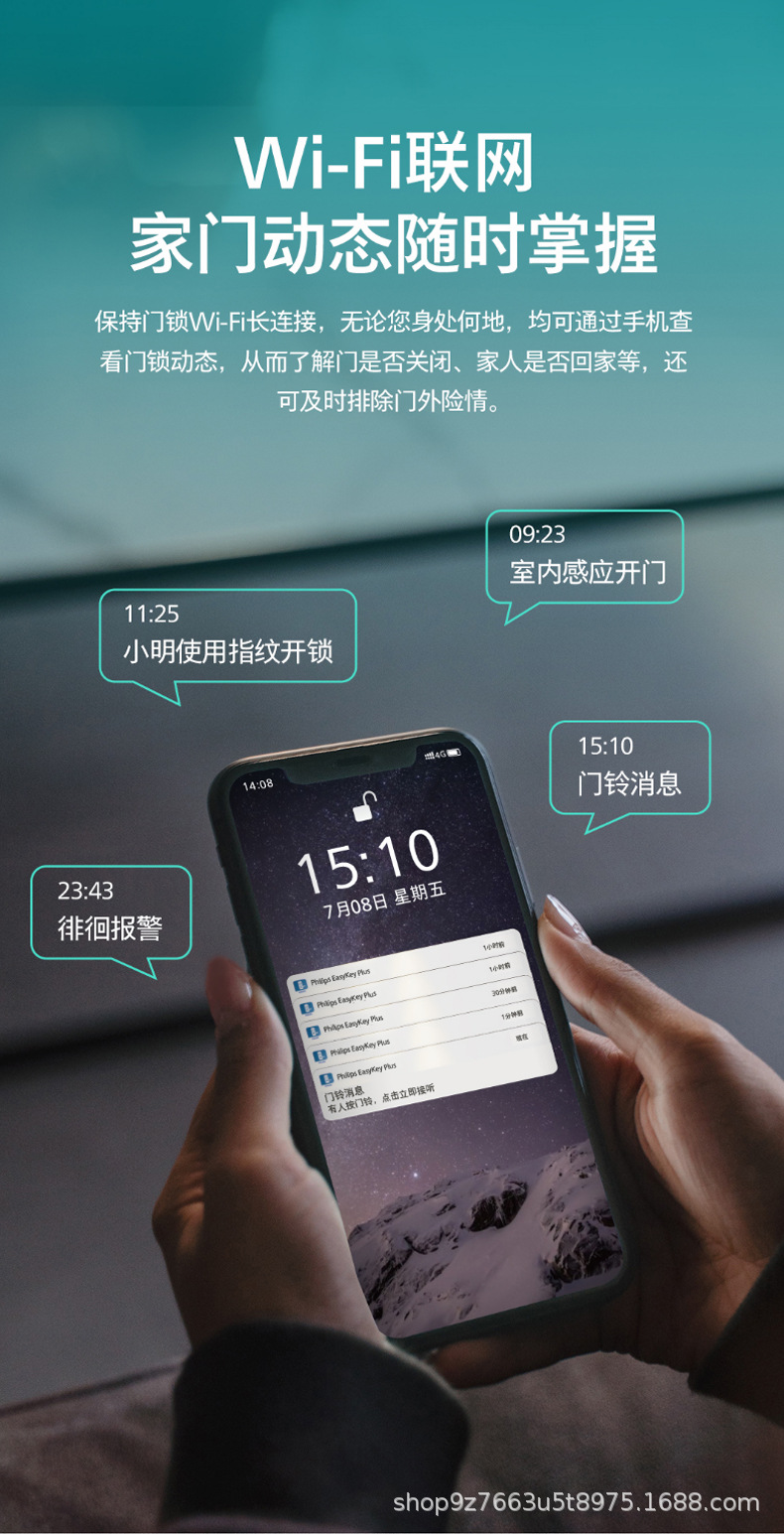 飞利浦智能锁702E指纹锁全自动家用防盗门WIFI推拉锁密码电子门锁