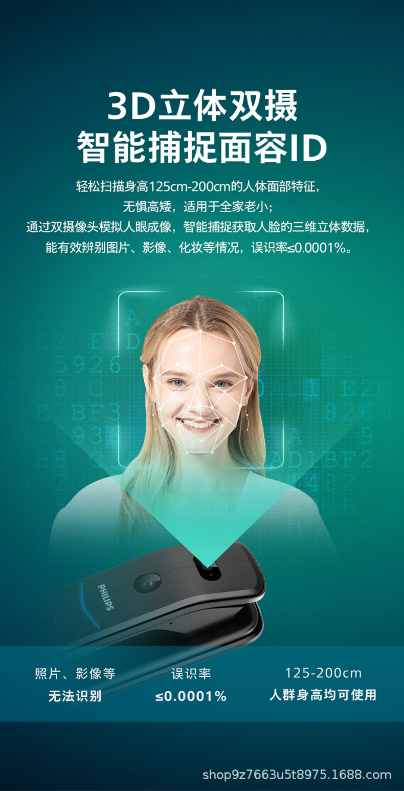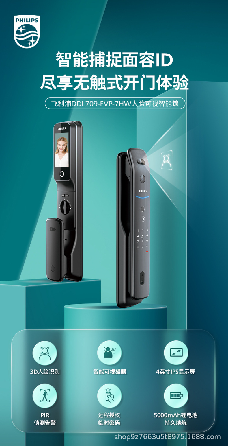 飞利浦709FVP智能锁主动监控人脸识别家用门锁电子锁密码锁指纹锁