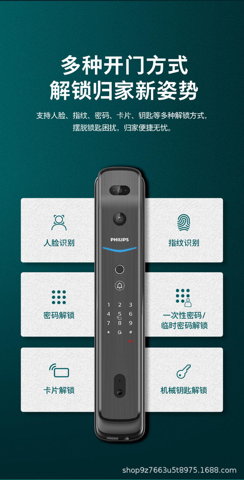 飞利浦709FVP智能锁主动监控人脸识别家用门锁电子锁密码锁指纹锁 数量