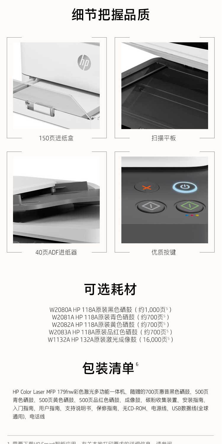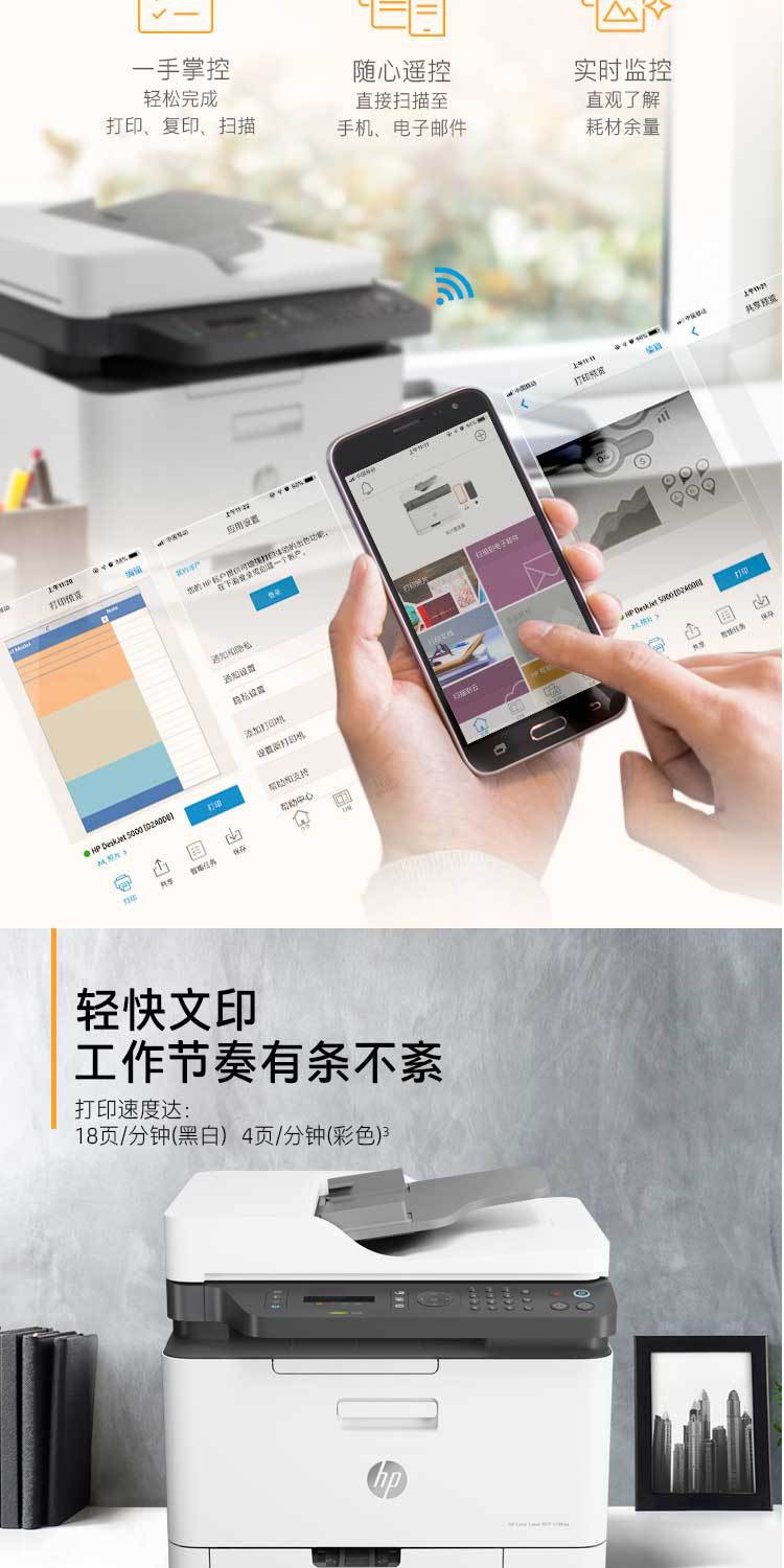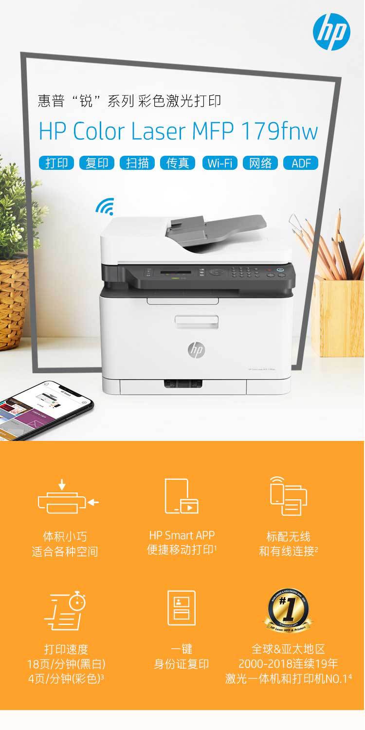 HP惠普178nw179 180N181FW复印一体机彩色激光打印机无线商用学生 数量