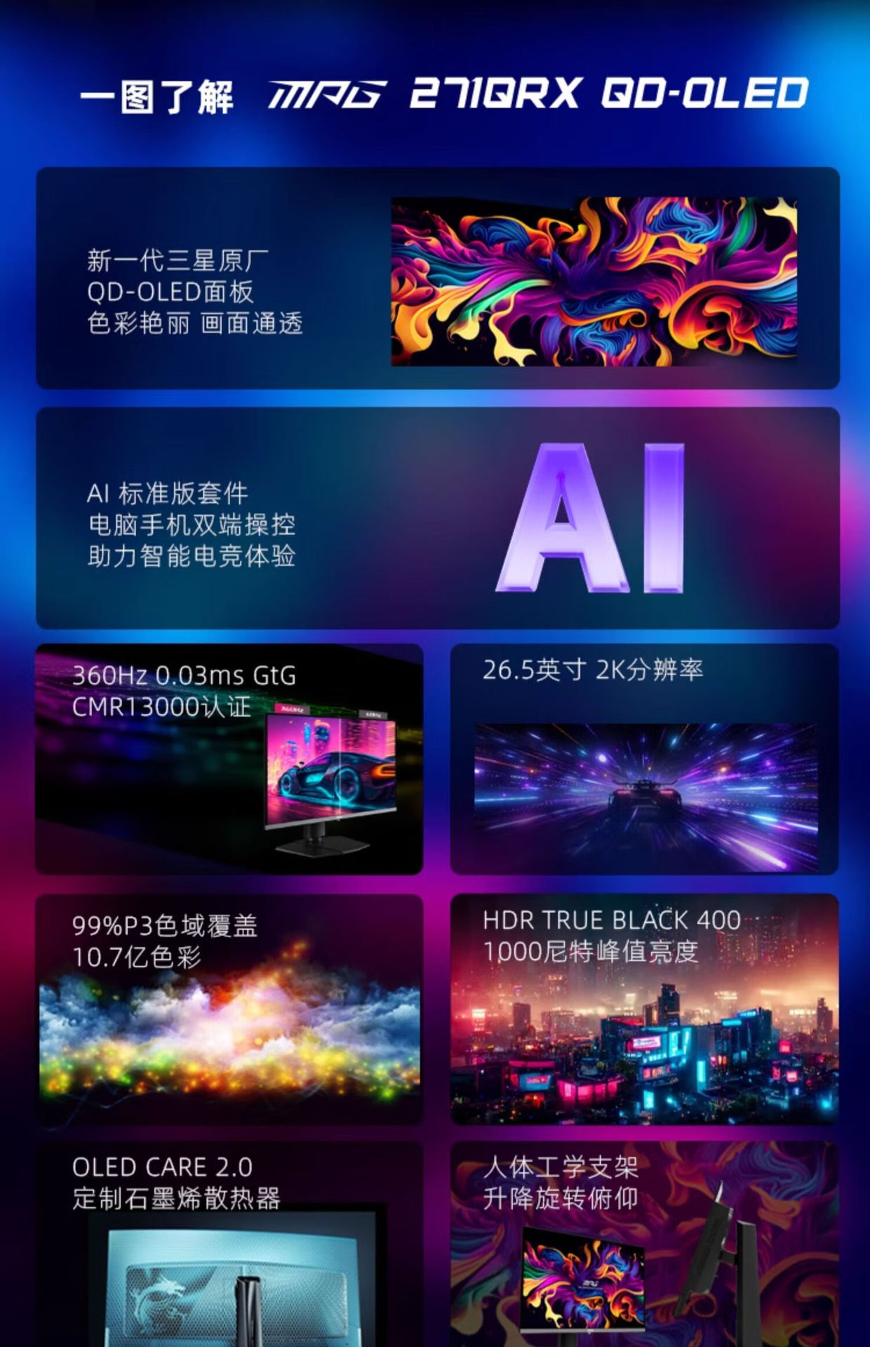 MPG271QRX QD OLED 26.5英寸2K 量子点 OLED 360Hz Type-C显示器