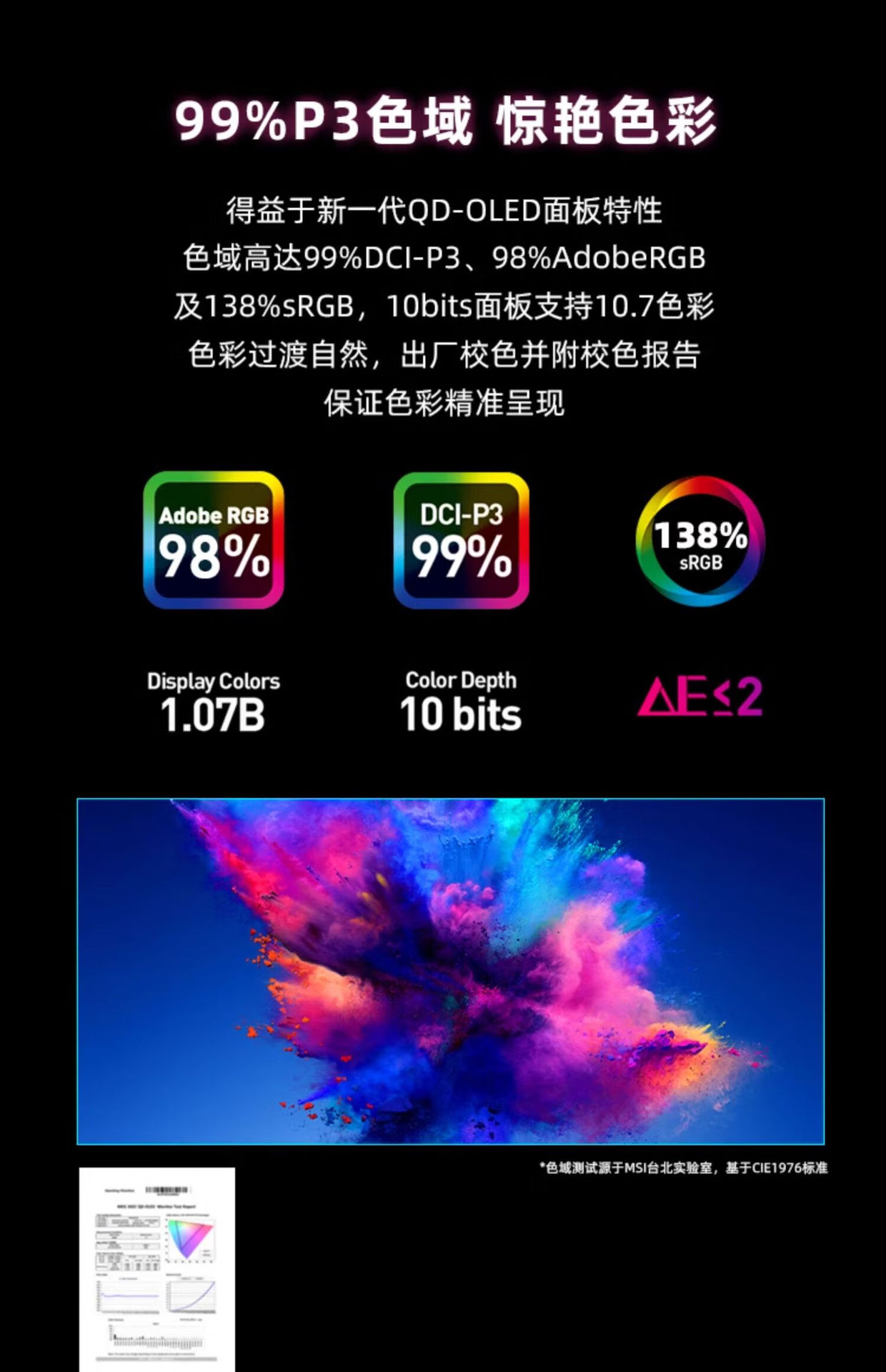 MAG271QPX QD-OLED E2 27英寸OLED 2K 240Hz 电竞高刷电脑显示器